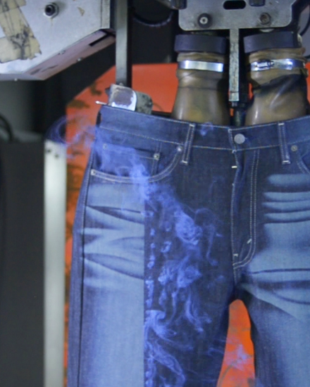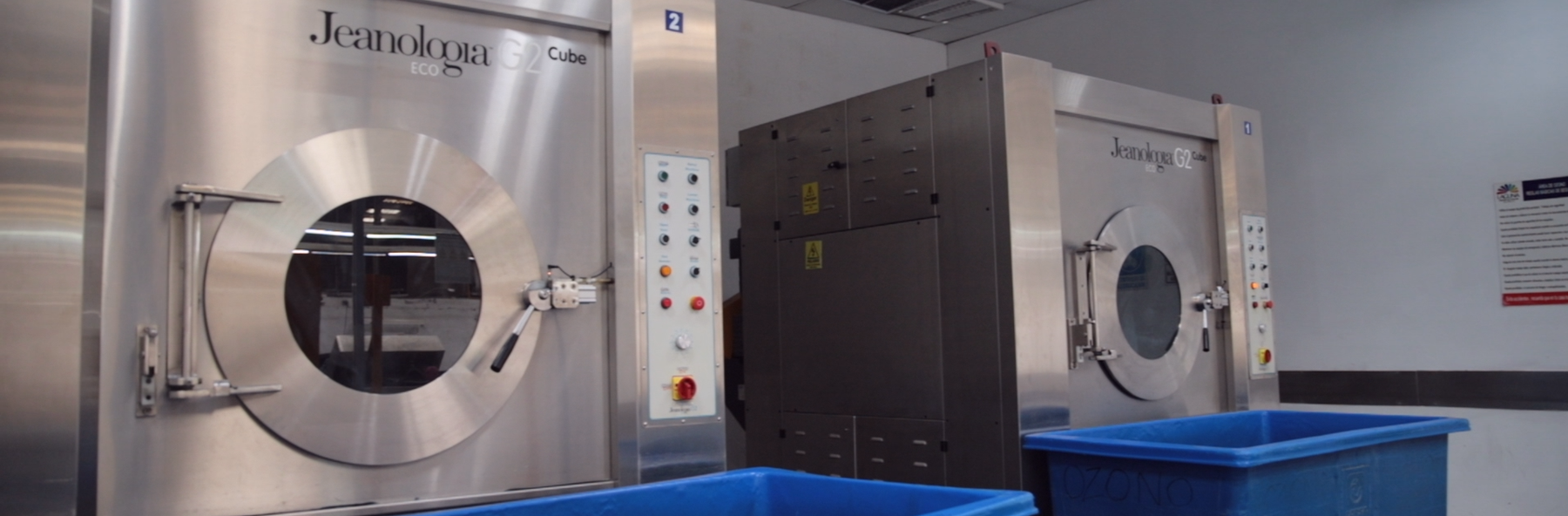 We utilize Jeanologia's ozone machines for bleaching without traditional bleach. This ozone wash is a triplemolecule Oxygen (O3).
